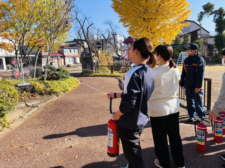 職員の消火訓練も同時に行いました。