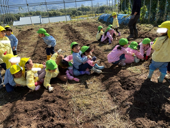 前日は少し雨が降りちょっぴり心配しましたが、翌日は元気に大口農園さんへ行くことができました。 みんな一生懸命にお芋を掘る・ほる・ほる・・ 沢山のサツマイモが収穫できました!! 大口農園さんが、今年のりんどうさんはすごかったですよぉ~!