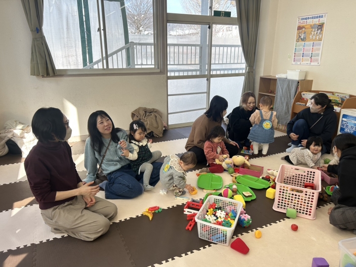 ひろばでは、お子様に楽しく過ごしていただくのはもちろんですが、おうちの方には、交流の場、子育て相談の場として気軽にご利用いただけたらと願っております。